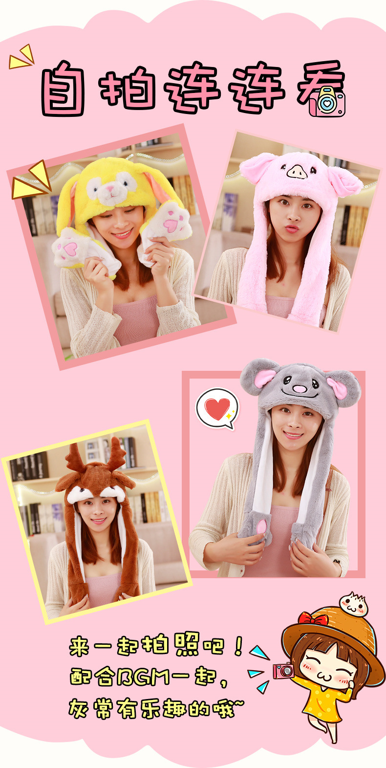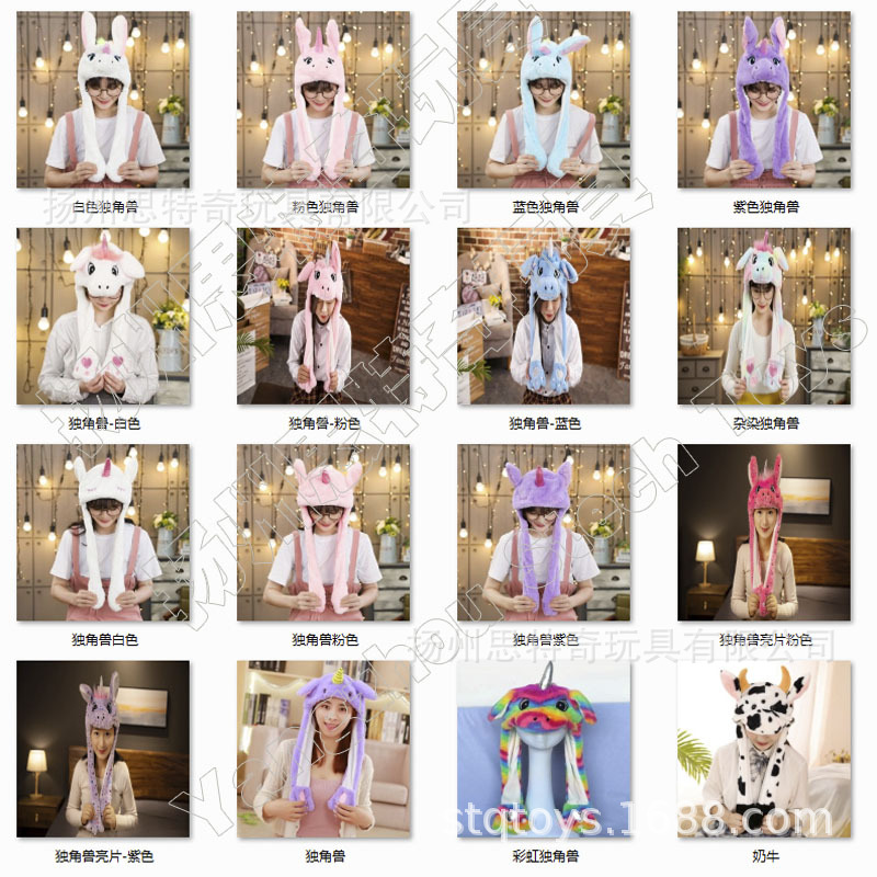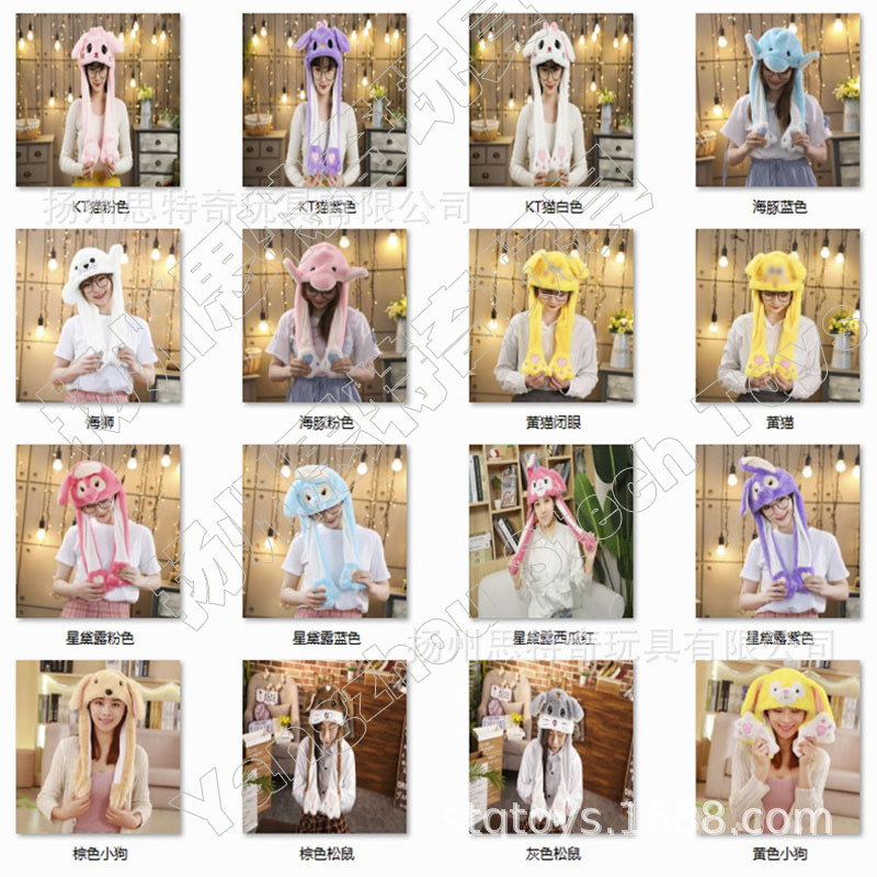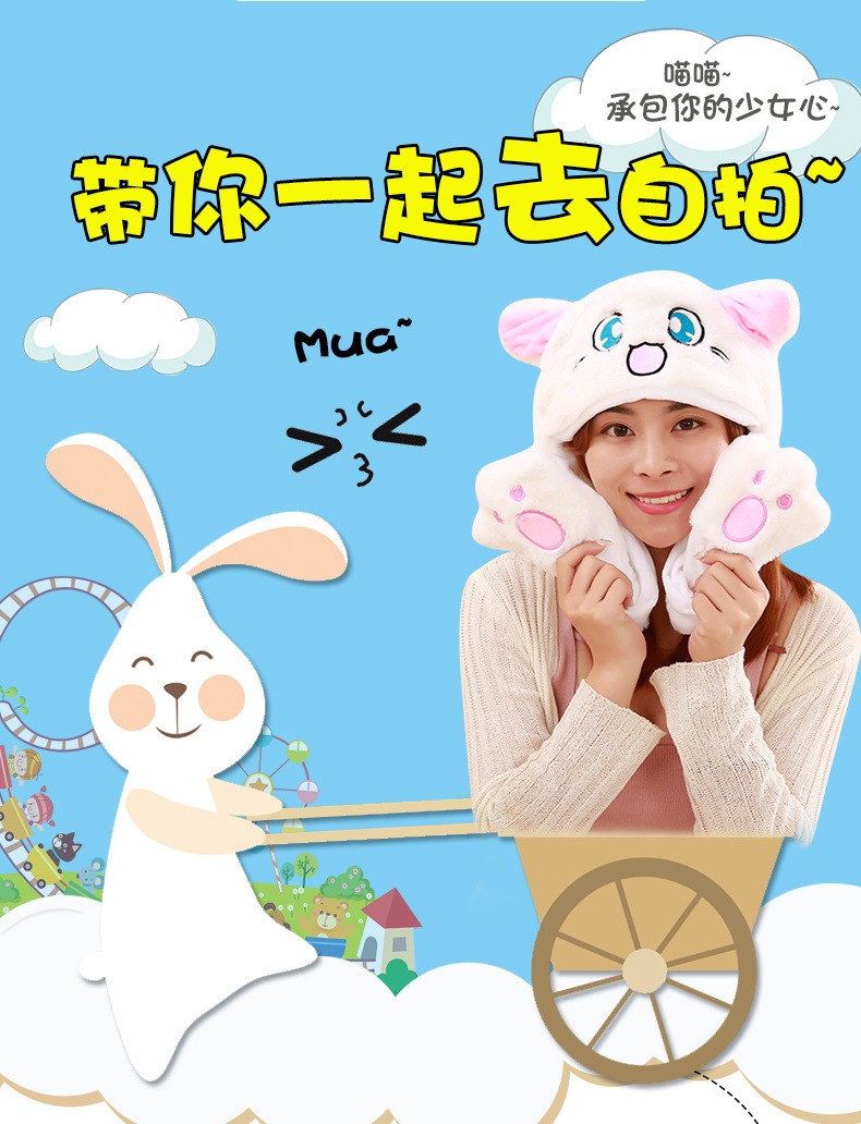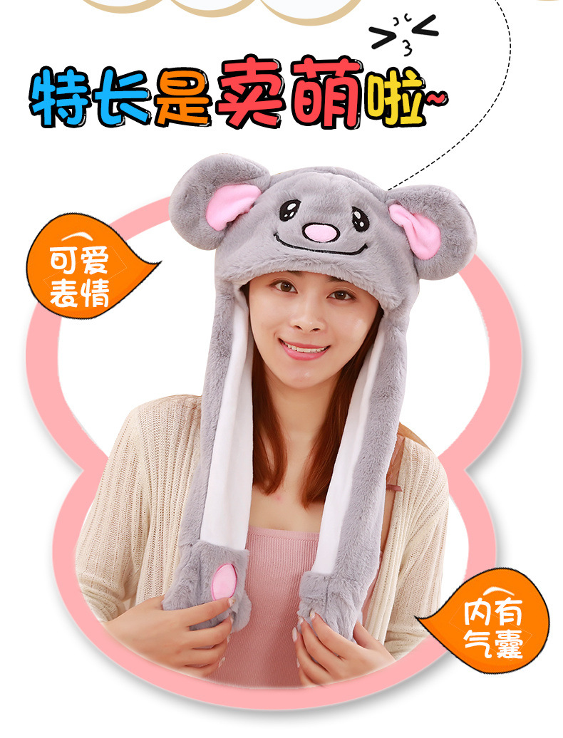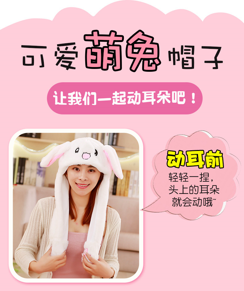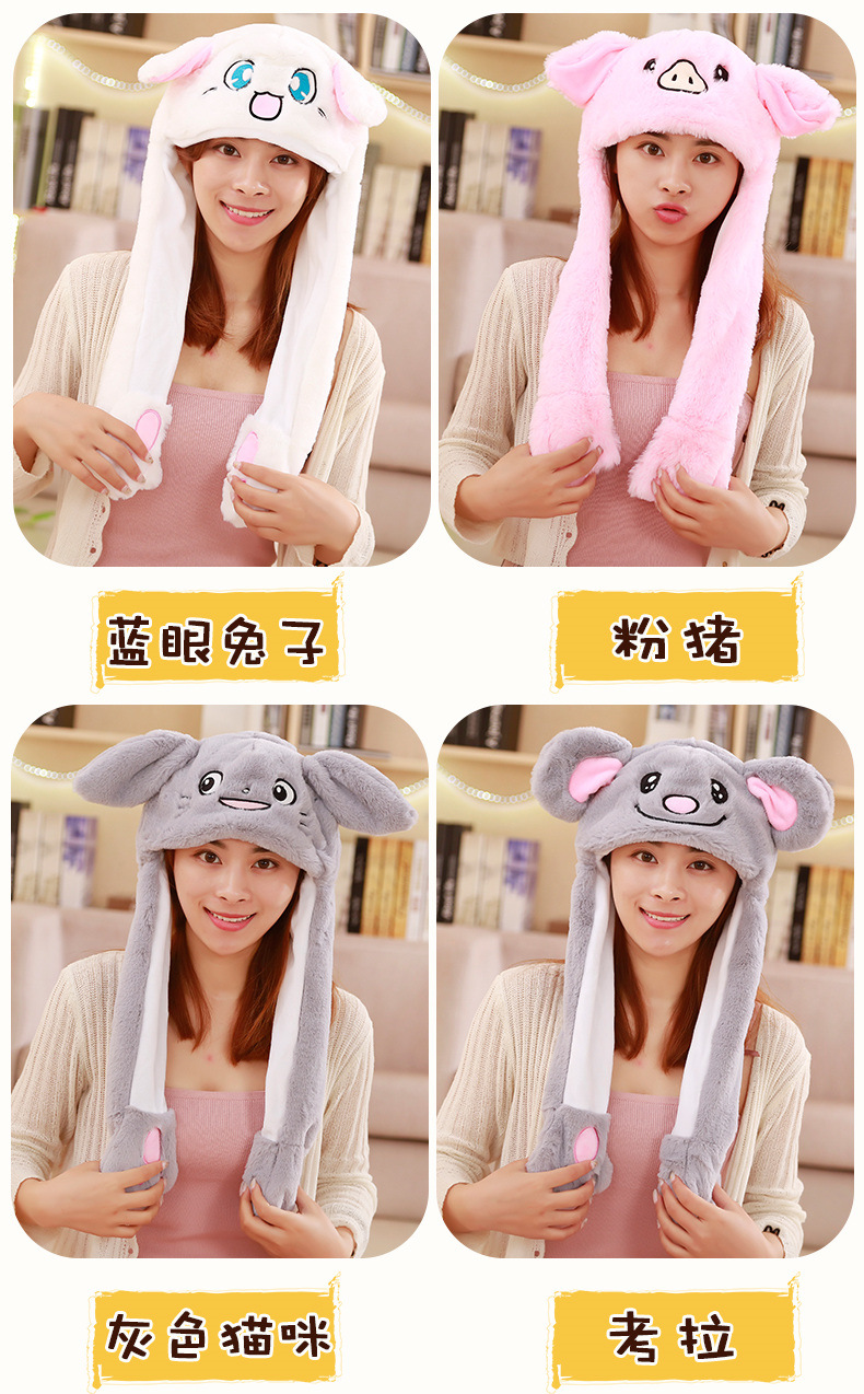 Rabbit ear plush hat airbag hat ears move animal hat plush toy colorful luminescence